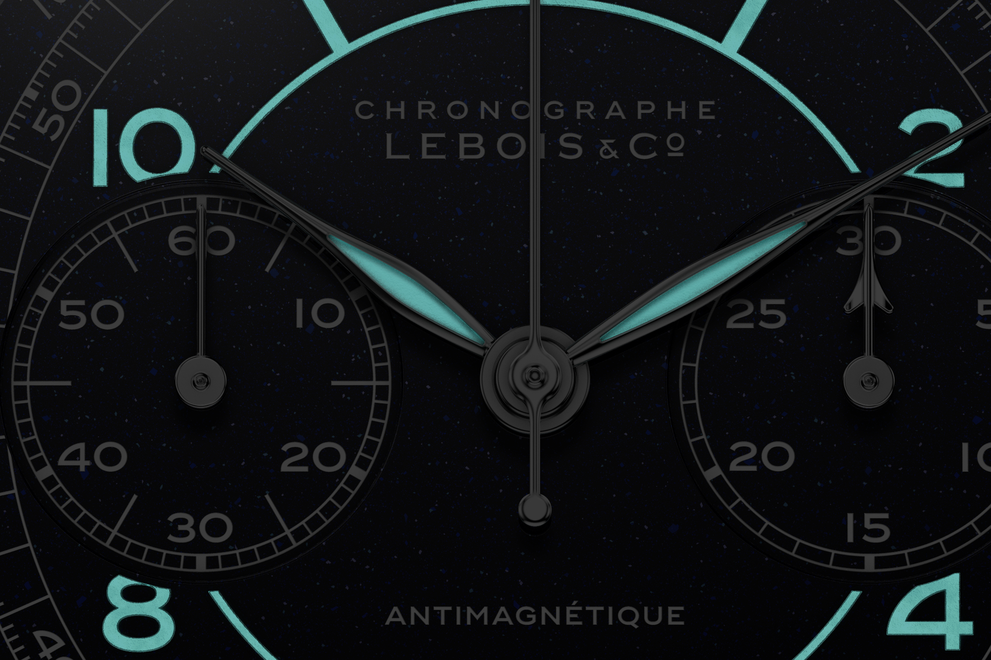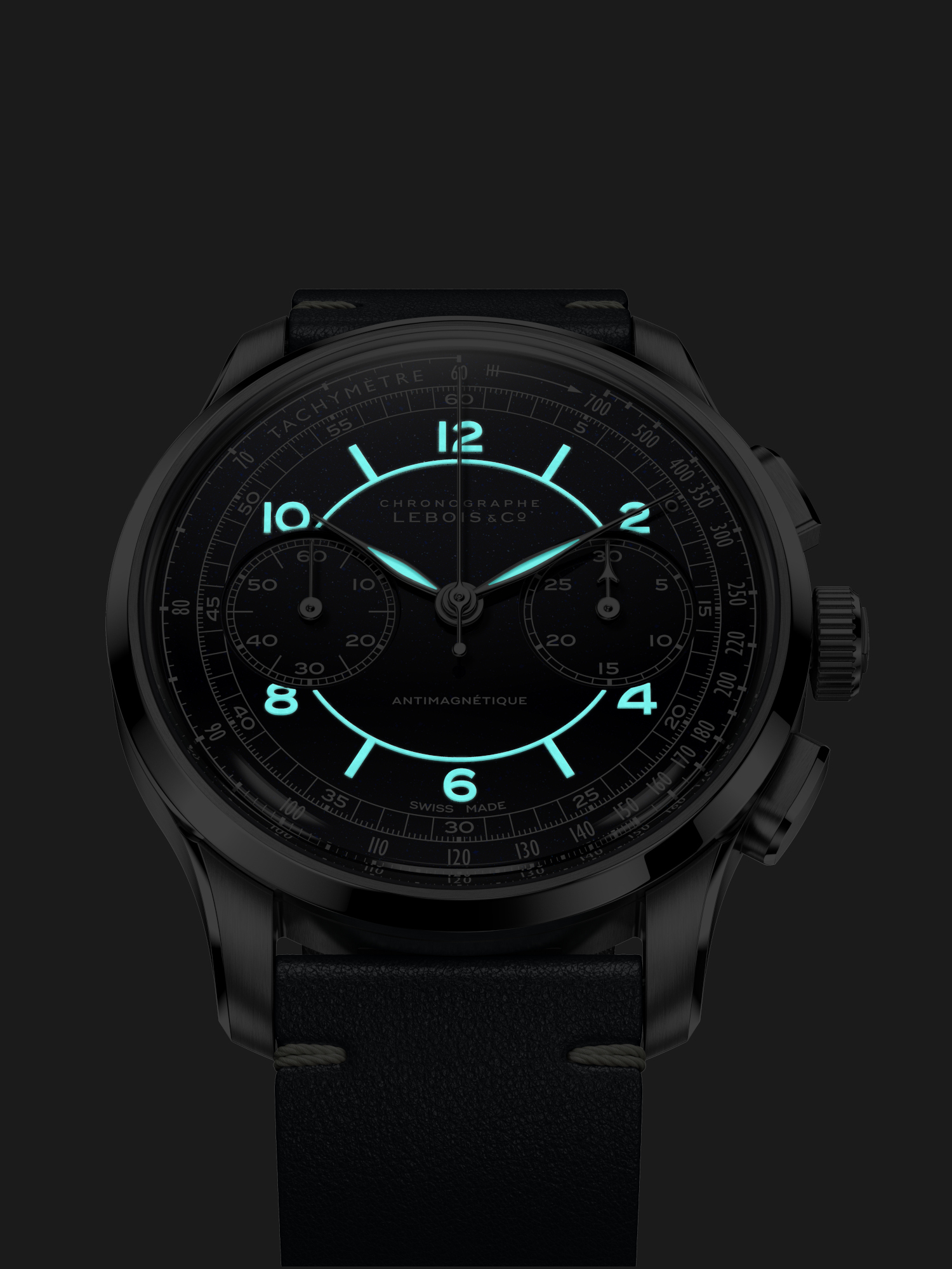 The sector layout brings calm clarity—concentric rings, crisp numerals, and an instrument-style scale that makes elapsed time instantly legible. And when the lights go down, readability takes the lead: BGW9 Super-LumiNova illuminates the hour and minute hands and the numerals and sector print, preserving the dial’s structure in the dark.